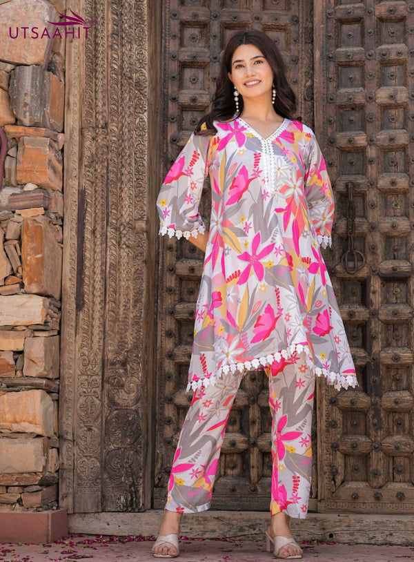 Floral Maslin Digital Print Kurta Pant Set
